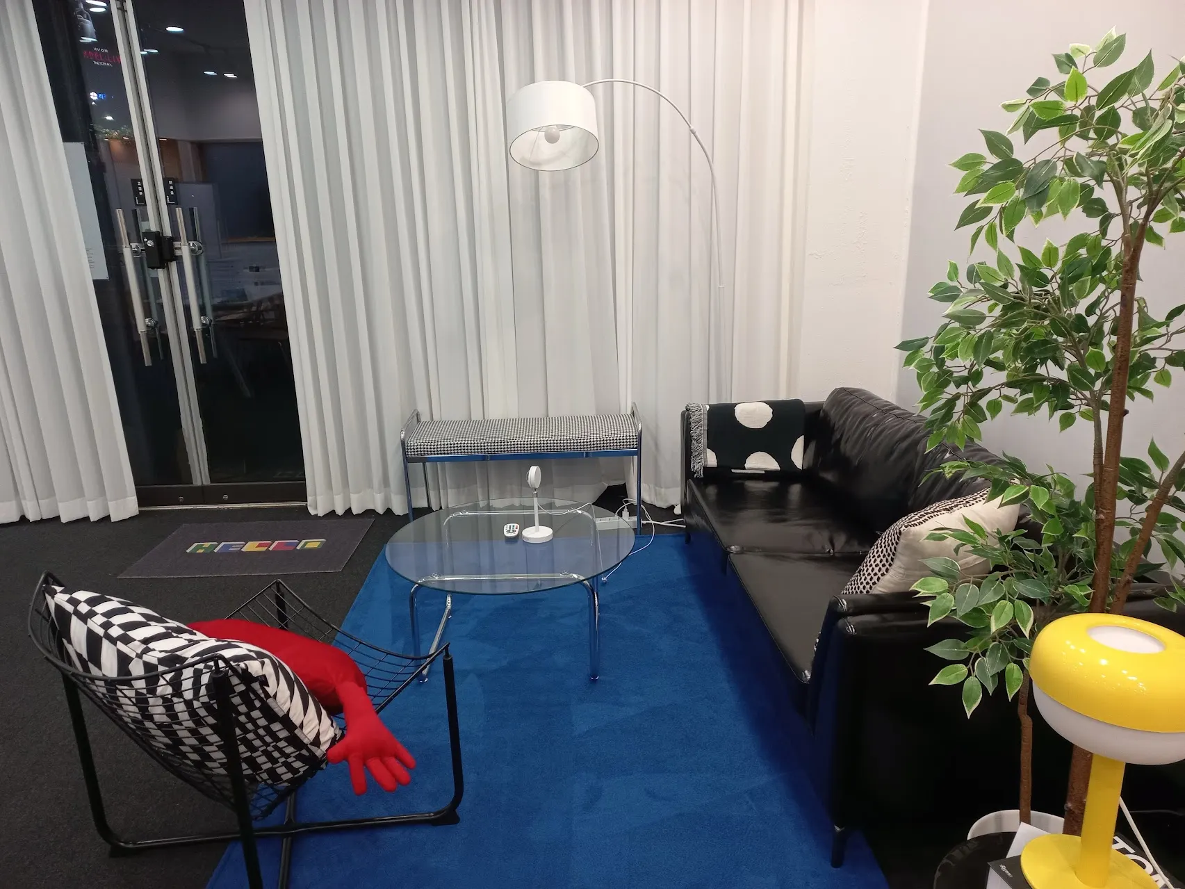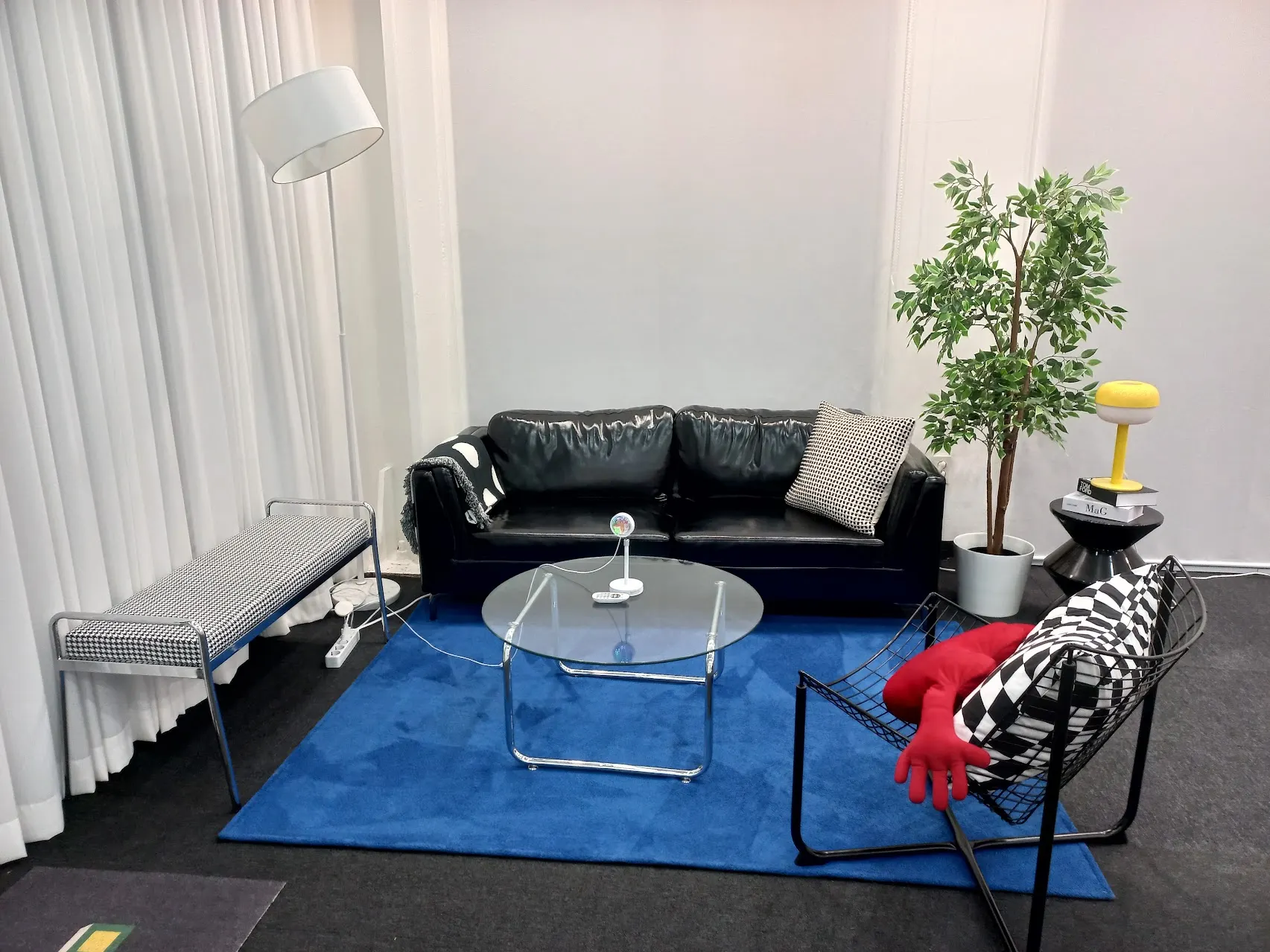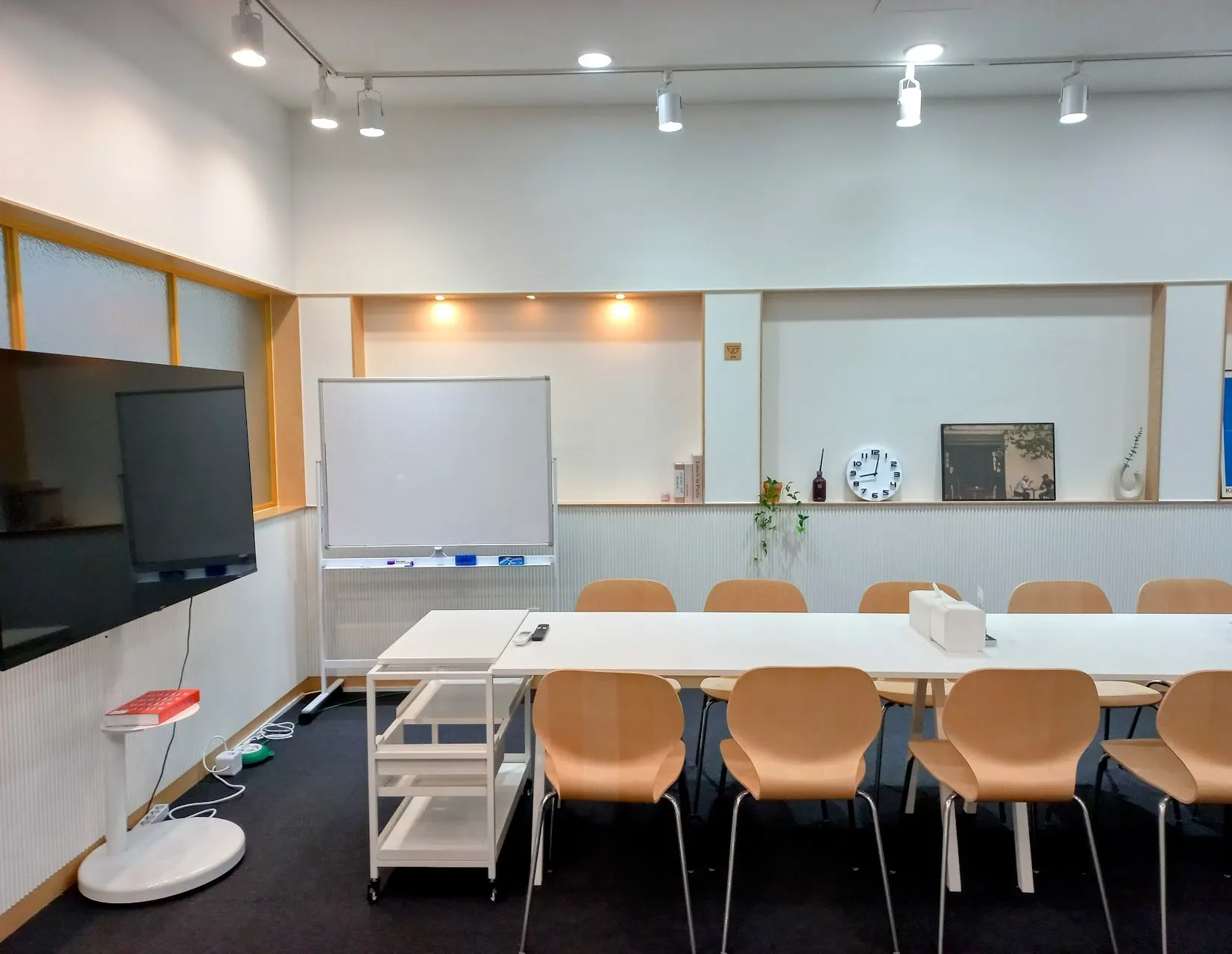 테이블 2개(최대 12인) / 6인용 접이식 테이블 2개 / 의자(기본 10개, 여분 10개) / 소파(4인) / 벤치형 소파(2인) / 작업용 트롤리(카트) 등이 기본 배치되어 있어, 필요에 맞는 다양한 공간 활용이 가능합니다.